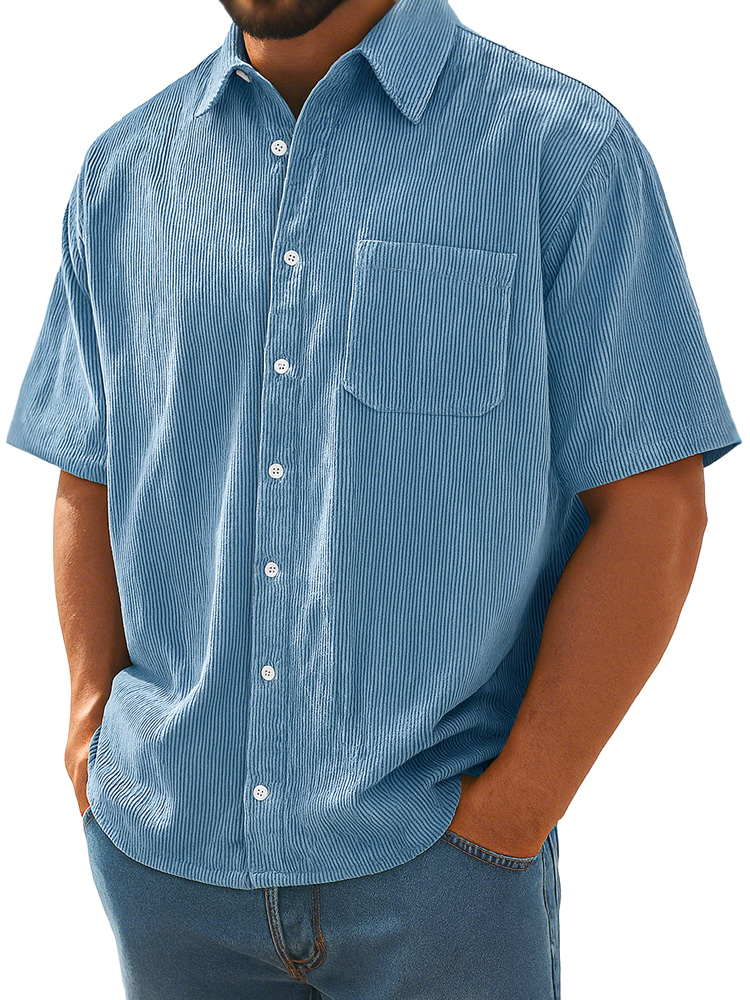 Herren Daily Corduroy Tasche Locker Casual Kurzarmhemd
