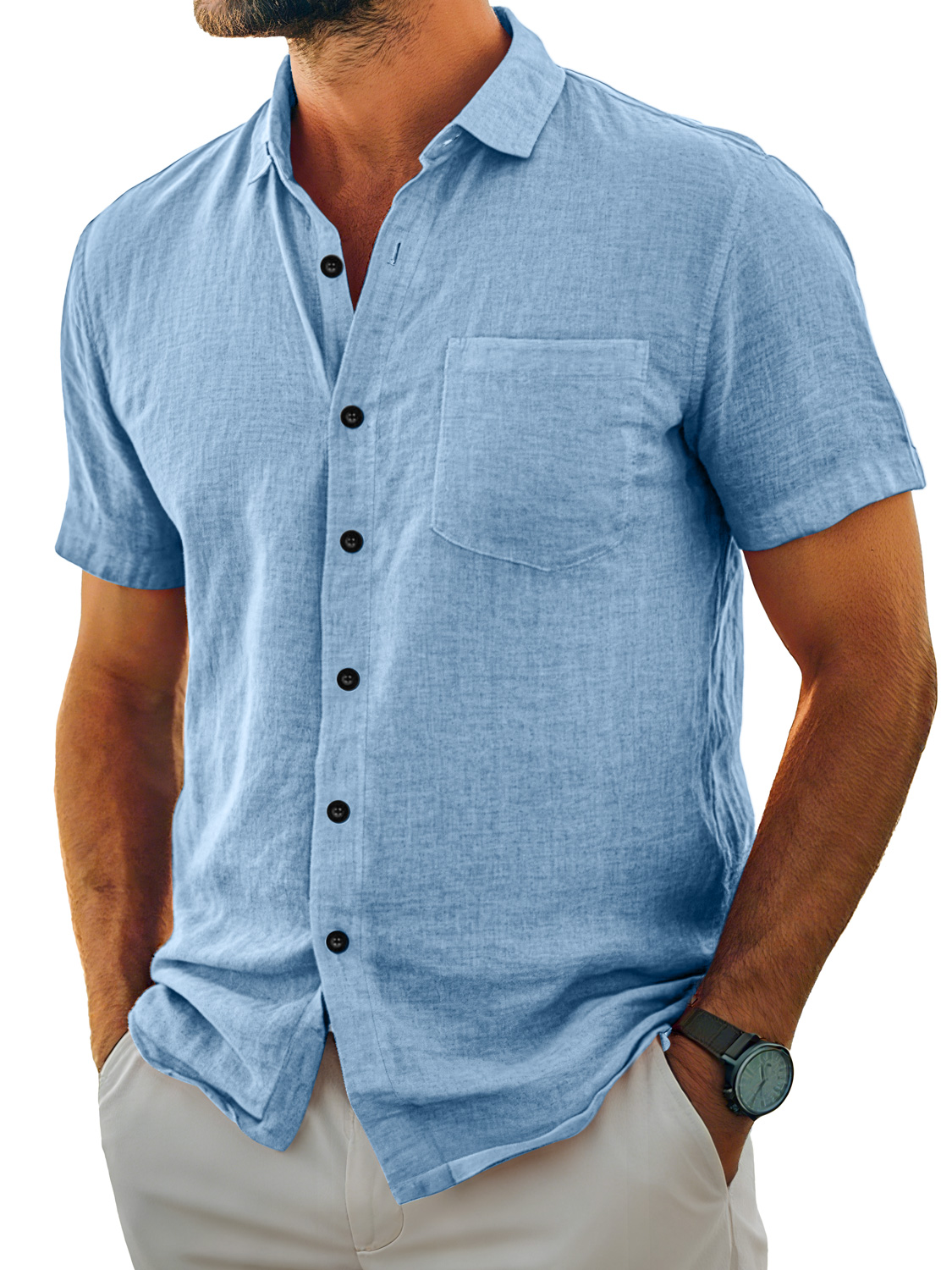 Herren Tägliches Lässiges Taschen Revers Einfarbig Bequemes Kurzarmhemd